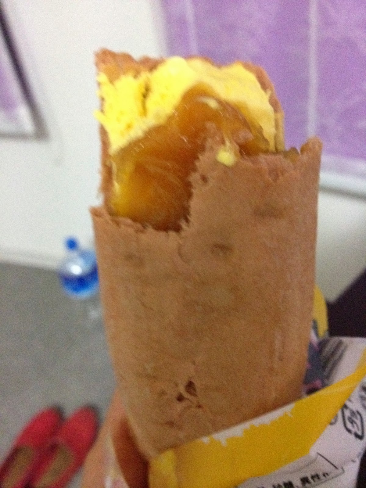 And da-ta-la-da~ The award for the best dessert/snack since I landed in Japan is....TAIYAKI! But its just a normal taiyaki no? NO. it is not. It's a croissant taiyaki which basically means its made out of pastry puff. If you have a good eye, you can also notice bits of pearl sugar at the top which is often used for belgian waffles to make the exterior crisp. This store recently opened at a location around 2 minutes away from campus, and the smell of the taiyaki's while I walk home is unbearable. I finally succumbed to it.